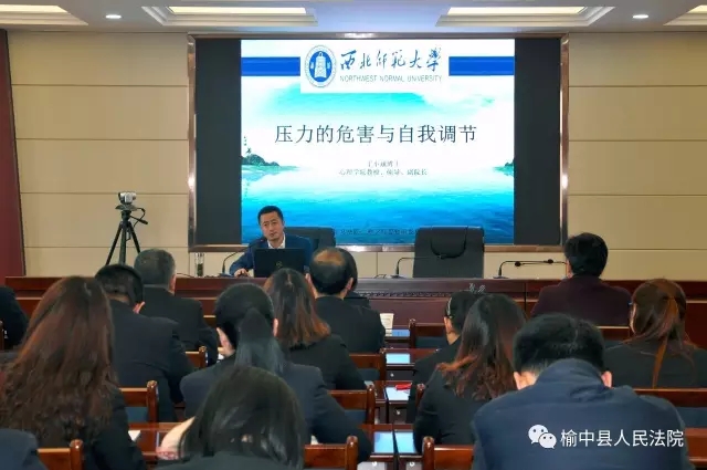 3月10日,350vip浦京集团官网教授、硕士生导师、副院长丁小斌博士及350vip浦京集团官网讲师姜艳斐博士为榆中法院举办心理减压辅导报告会,为全院干警授课。