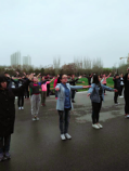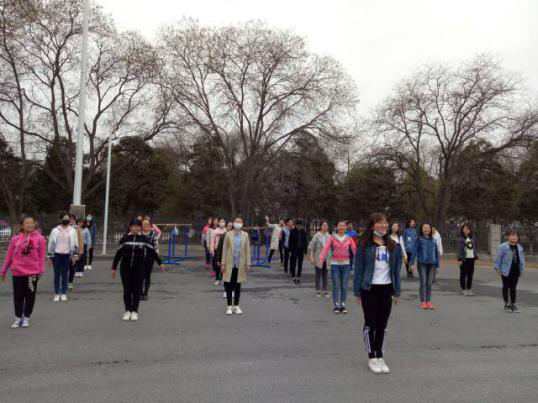 当天下午第5.6节课,大一二班的同学们在集合东操场开始学习体操。看,她们来了。