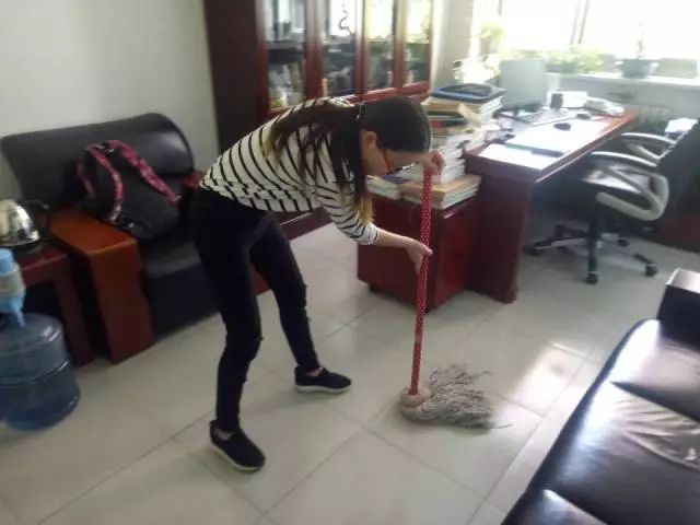 本次活动由班委牵头,指定负责人具体负责,在经过充分准备,带齐所需工具后,参加此次活动的同学们将办公室地面、桌椅、书架等各个位置进行了认真细致的清扫和擦洗,并且反复排查卫生死角,力求给院长一个干净、卫生、舒适的工作生活环境。