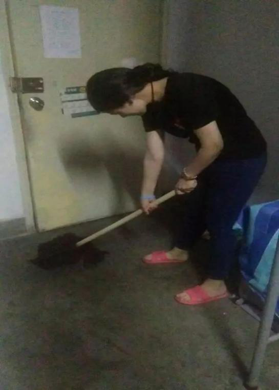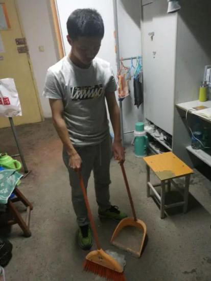同学们准备好笤帚、簸箕、墩布等工具并对各自宿舍及其门口,进行了细致入微地打扫。