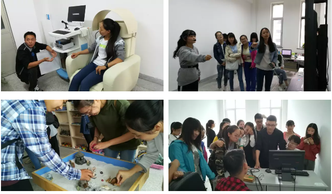 9月18日上午新生参观了ERP实验室、眼动实验室、身心健康实验室、测谎实验室、行为观察实验室、模拟驾驶实验室、沙盘、宣泄室、催眠放松室、基础心理实验室等。浦京实验设施齐全,实验仪器众多,为实验的进行和专业的研究提供了先决条件。各实验室的负责人对各种实验仪器进行的深入浅出的讲解, 增强了同学们对心理学实验的兴趣 。