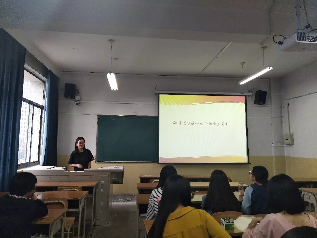 本科生第二党支部许琼英老师带领大家学习了《习近平的七年知青岁月》一书的主要内容,让同学们了解了青年习近平在陕北黄土高原“苦其心志、劳其筋骨、饿其体肤、空乏其身”的艰苦生活及成长历程,为全体同学树立正确的世界观、人生观、价值观,锤炼党性、砥砺成才树立了榜样,指明了方向。随后,张可媛同学组织大家观看了专题片—《梁家河的故事》,进一步加深了同学们对习近平总书记的认识与了解。