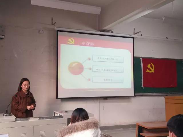 为积极响应学校号召,学习十九大精神,让同学们认识到当代大学生所肩负的使命和责任,350vip浦京集团官网本科生党支部于11月23日下午在教七206召开了“学习十九大精神”主题党日活动。本次党日活动由王雪琪同学主持,本科生党支部全体党员及入党积极分子参加。