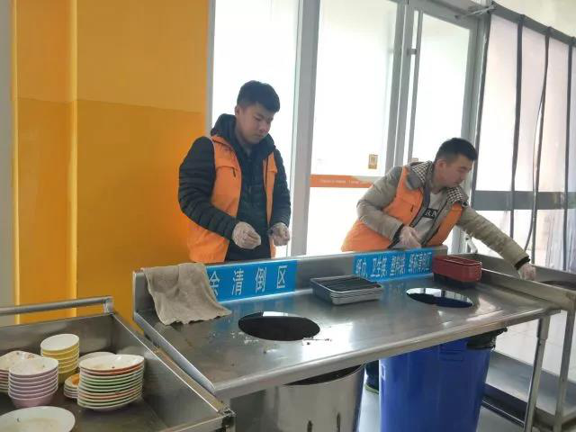 督导期间,浦京学生按时到岗,全身心投入到工作中,指引就餐结束的同学将剩菜倒入桶中,将餐具放到指定位置,并动手帮助食堂阿姨将餐具分类回收。