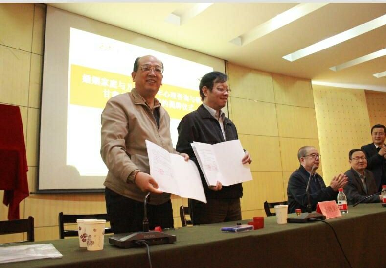 在热烈的掌声中,方晓义和周爱保在共建合作协议书上签字。签署合作协议结束后,万明钢和方晓义共同为婚姻家庭与儿童青少年心理咨询甘肃分中心揭牌,双方代表合影留念,签约揭牌仪式圆满结束。