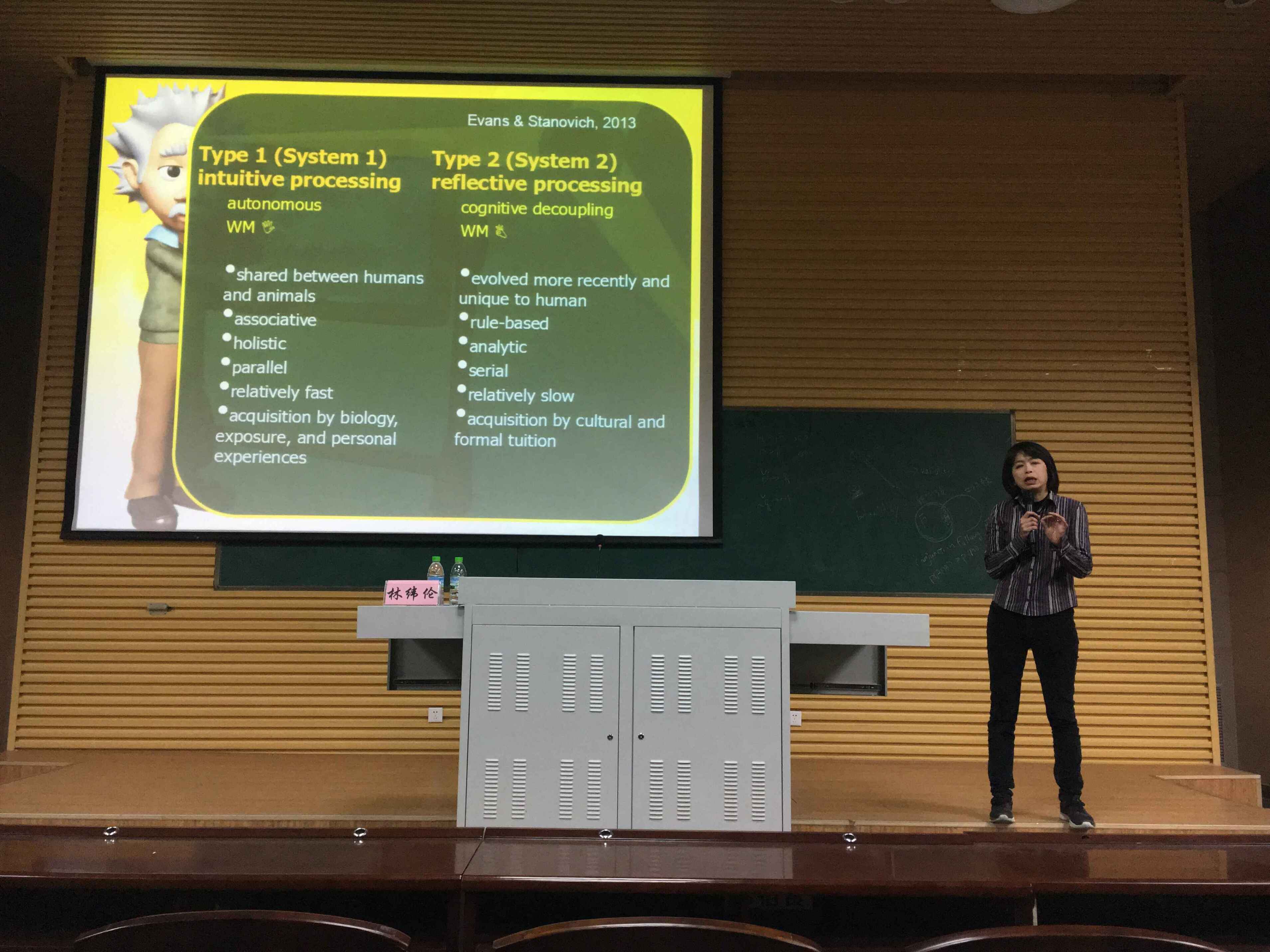 受学院邀请,台湾佛光大学心理学系林纬伦副教授于2018年3月28日14:30-17:00在毅然报告1厅进行了题为《人是理性的吗?——思考心理学中的双历程论》。报告由姜艳斐老师主持,主要由浦京大三学生参加。