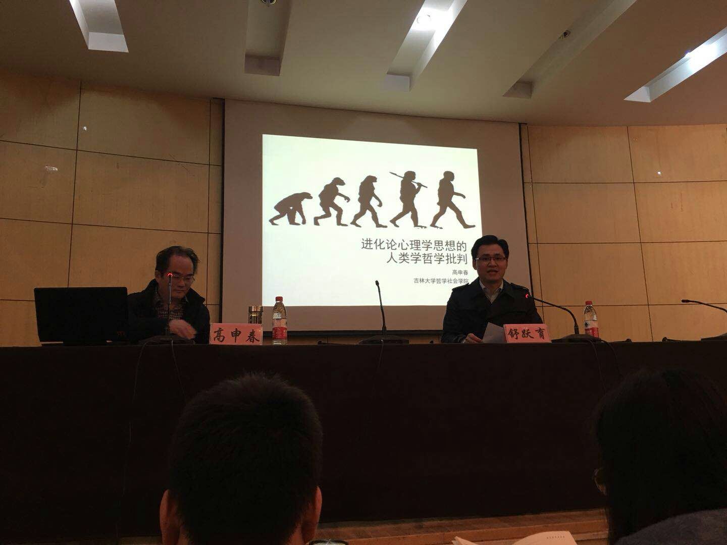 受学院邀请,高申春教授于2018年4月1日早晨9点在逸夫图书馆学术报告厅就“进化论心理学思想的人类学哲学批判”进行了报告。报告活动由舒跃育老师主持。此次报告主要由研一、研二学生参加,诸位老师也出席了本次活动,部分本科生旁听。