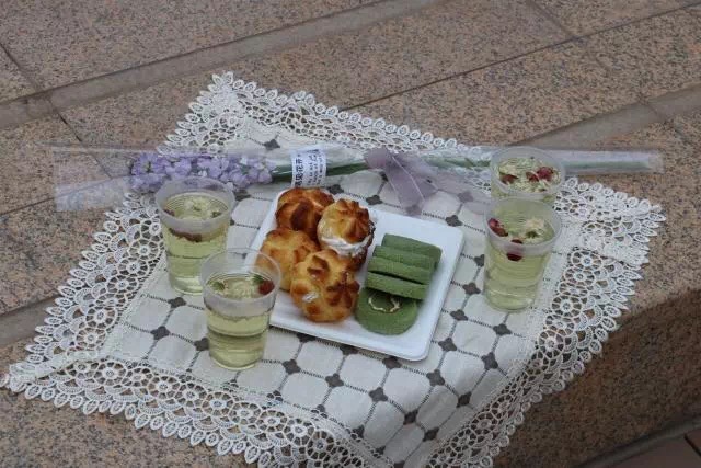 值得一提的是,活动仿照古人游园饮食,为每一组都准备了一块方巾,方巾上备花一枝和糕点一碟,每人一杯花茶,营造出清新雅致的氛围。大家席地而坐,以诗会友,品花茶、赏春景、怀春情、吟诗歌,度过了一个充满诗情“花”意的夜晚。