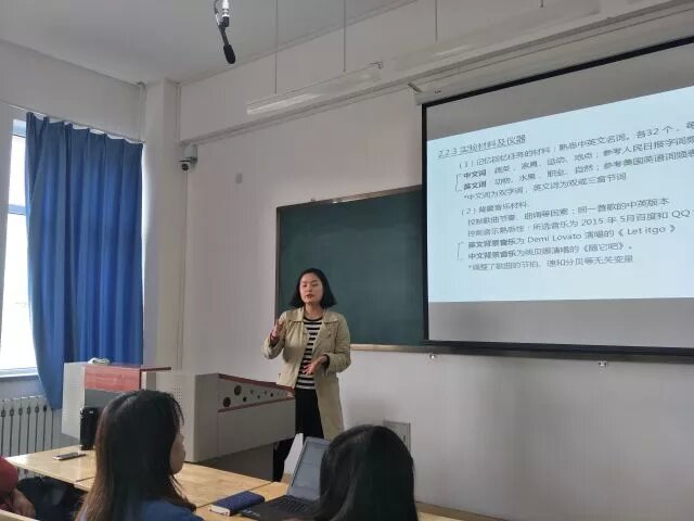 在心理科研技能比赛环节中,夏艺萍同学通过中英文流行背景音乐对大学生中英词汇记忆的影响献的报告,展示了优秀的专业素养。在该选手精彩的讲解之后,由全体观众投票推选出夏艺萍同学代表2015级心理学基础班参加院级心理科研技能比赛复赛。