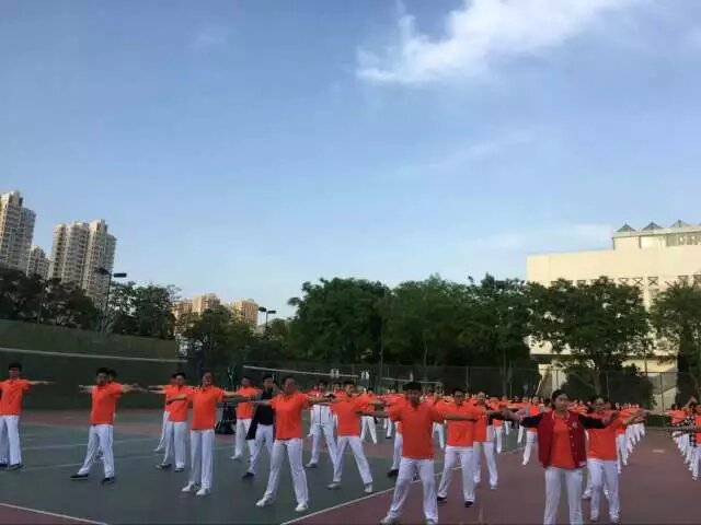 训练场上,同学们个个精神抖擞,昂首挺胸,无不散发着蓬勃的朝气与青春的活力。在领操同学耐心的讲解与纠正下,一个举臂,一个转身,一次弯腰,都做得一丝不苟,动作整齐划一,和着音乐节拍,时而柔美,时而活力,充满青春向上的蓬勃朝气。