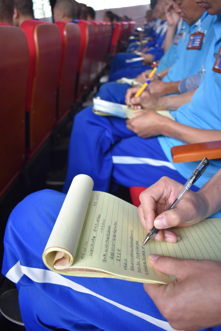 本次讲座分为理论讲解和实践训练两大部分,在理论讲解部分,何圆圆研究生首先以情绪小游戏为切入点,深入浅出的向戒毒学员讲述了什么是情绪及情绪管理,极大地激发了戒毒人员对讲座的兴趣感和参与度。紧接着,讲座分别从为什么需要管理情绪、怎么样进行情绪管理两个方面引导戒毒人员深刻懂得如何正确处理在日常戒治生活中产生的各类负性情绪。在实践训练部分,郭瑾瑾研究生带领全体戒毒人员体验和练习了正念疗法。在训练过程中,700多名戒毒人员和部分管教干警随着轻缓音乐的响起,慢慢闭上眼睛,将自己放松到一个最舒服的状态,随后跟随言语指导去体验自己的呼吸,将全部注意一关注于呼吸,体验自己鼻子的呼吸,胸腔的呼吸,腹部的呼吸,以及身体整体的呼吸,用心去体验活在当下的宁静。持续20分钟的正念训练进行完毕之后,训练师让戒毒人员踊跃发言并相互分享自己的感受。