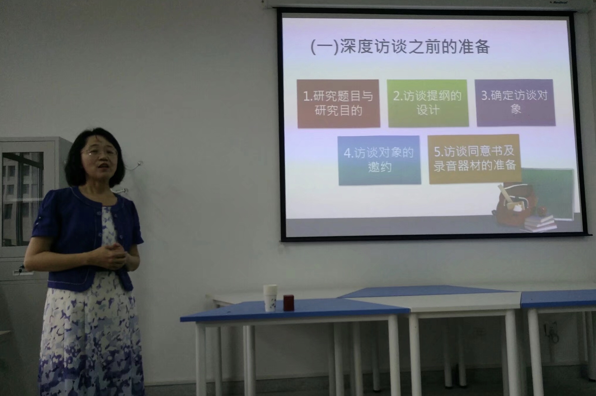此次报告主要以《叙事心理的发展脉络与应用》这一主题来展开,在报告中李老师着重讲解了深度访谈的准备工作,如确定访谈的提纲,访谈对象,访谈对象的邀约,录音器材的准备,以及深度访谈的过程。除此之外,李老师就叙事心理的理论基础以及在研究过程中所注意的事项进行了详细的讲解。