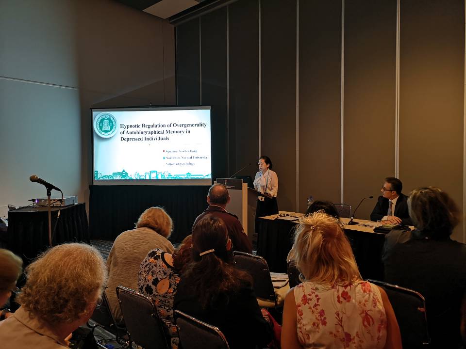 2018年8月25日,浦京教师姜艳斐博士应邀参加第21届世界医学与临床催眠大会大会,并作题为“Hypnotic Regulation of Overgenerality of Autobiographical Memory in Depressed Individuals”口头报告。