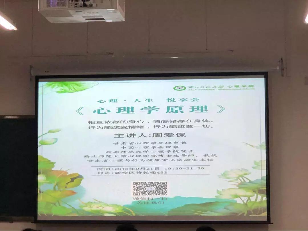 首先,周爱保院长讲述了自己的大学经历,“思维着的精神是地球上最美的花朵”,人类的心理现象是人类意识发展的最高层次,引导同学们树立对心理学的兴趣。