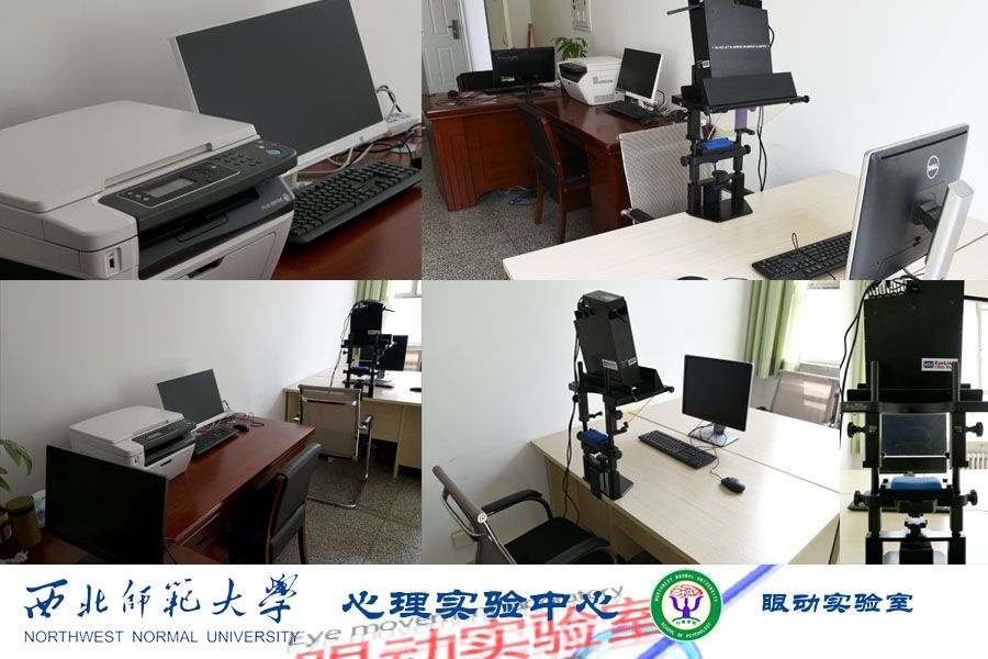眼动实验室于2015年引进了加拿大SR-research的Eye-Link 1000 plus眼动追踪系统,该系统能记录被试的眼动轨迹,从中提取诸如注视点、注视时间、次数、眼跳距离、瞳孔大小等数据。系统软件运行后可实时分析被试眼球运动视频、注视点坐标,辅助信息等数据,并对其进行视频叠加。眼动追踪系统广泛地应用于阅读、广告、人类工效学、发展心理学、体育学、变态心理学等领域的研究。