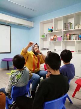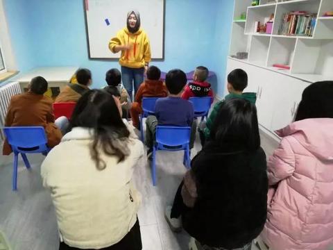 收拾好之后,志愿者们走进精灵班孩子们的课堂,陪孩子们一起上课。