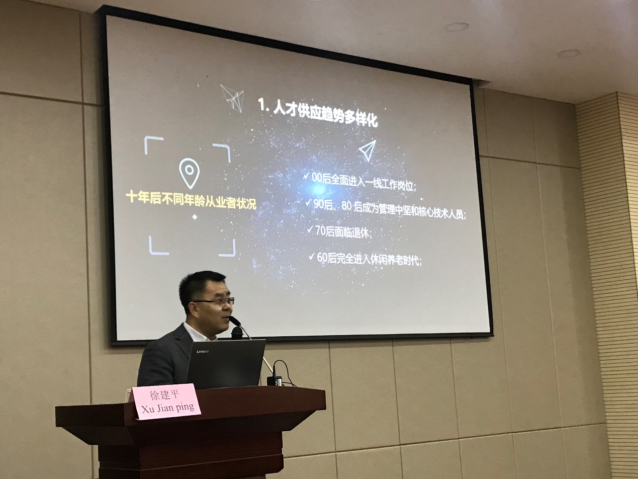 徐建平老师以乔布斯的名言开头:“我过去常常认为一位出色的人才能顶两名平庸的员工,现在我认为能顶50名。我大约把四分之一的时间用于招募人才”,这引发了我们极大的兴趣。报告中徐老师对当前国际国内人力资源市场现状进行了概述,对未来以人工智能为依托的人力资源测量技术进行了介绍,对传统心理测量学向新型测量趋向的转变进行了理论分析,并且结合实际应用例证,对未来人才选拔的理念和技术进行了解说。