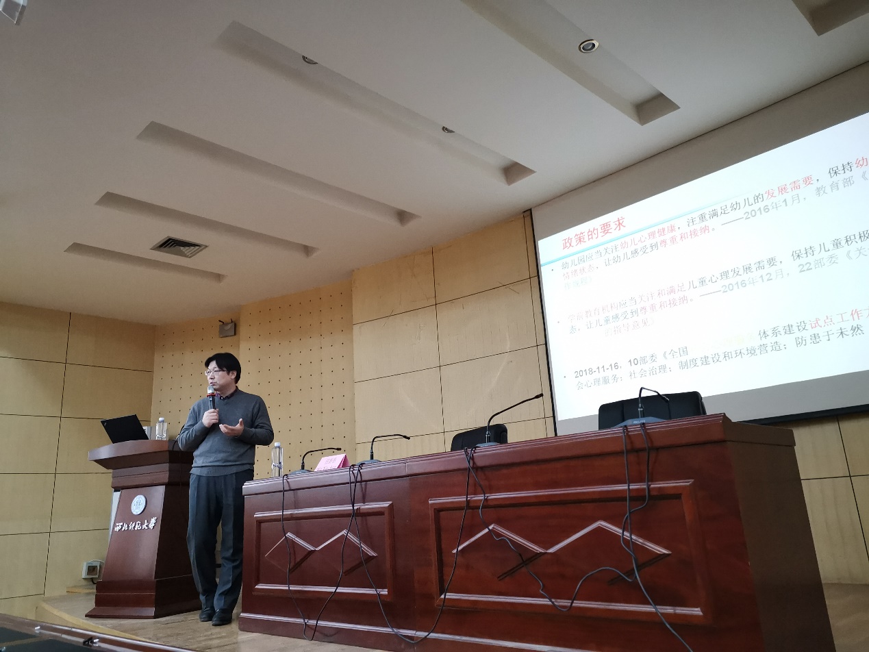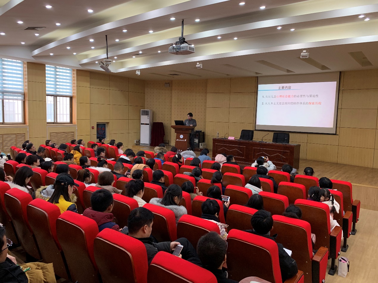 2019年01月05日下午,北京师范大学心理学教授、博士生导师伍新春老师在逸夫图书馆一楼报告厅做了题为“从人本咨询到共情陪伴--儿童心理社会能力培养”的报告。报告由350vip浦京集团官网院长周爱保教授主持。350vip浦京集团官网研究生,甘肃省心理学会成员及中小学教师共100余人参加。