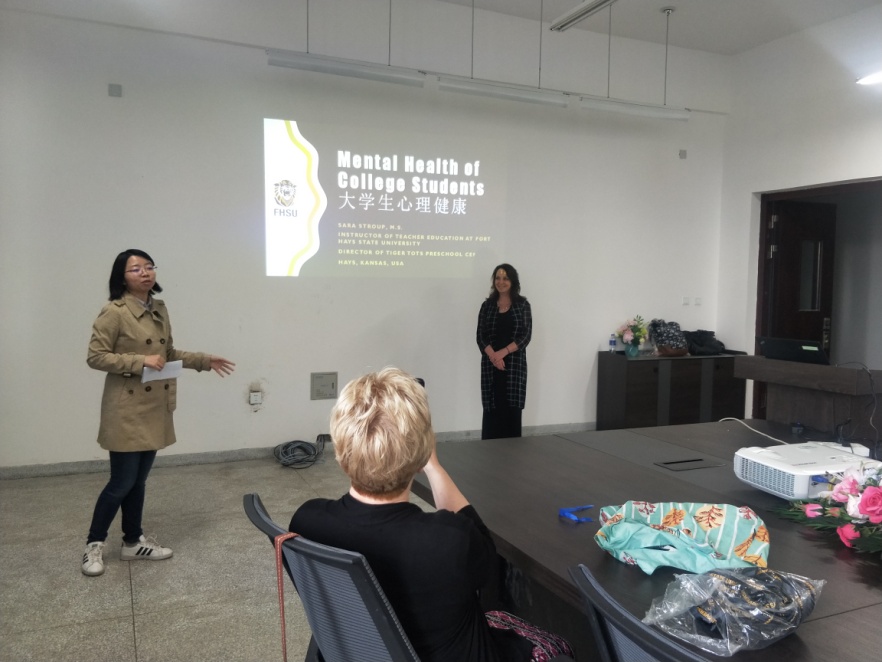 2019年5月28日上午10点,福特海斯州立大学教育系讲师Sara J.stroup在新校区特教楼大楼404为浦京师生作了一场以《Mental health of college students》为主题的讲座,Sara J.stroup老师的研究领域为儿童发展,幼儿特殊教育与基础教育。报告由350vip浦京集团官网张荣华老师主持,350vip浦京集团官网50余名师生参加了此次讲座。