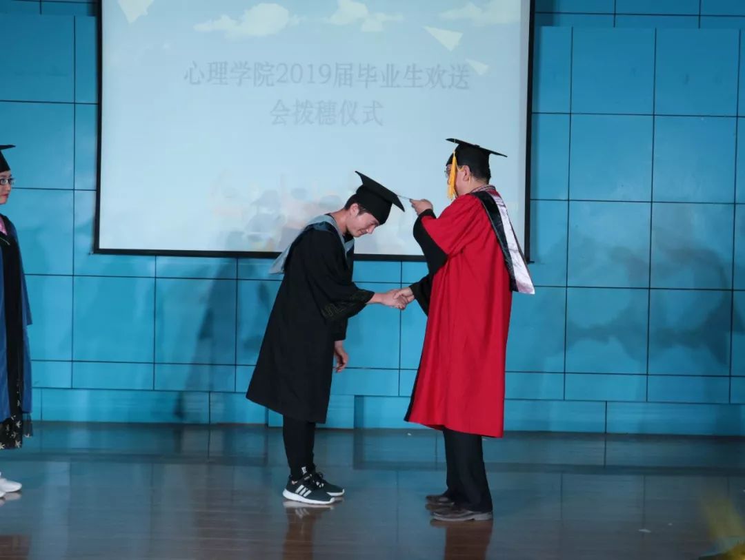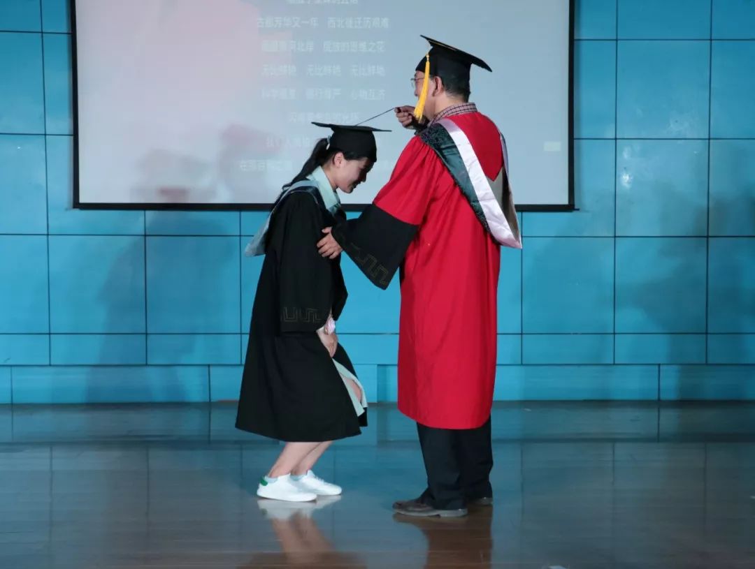 伴随着校歌和院歌,周院长为所有毕业生拨穗正冠,象征毕业生已经学有所成,可以带着知识与理想如鲲鹏般展翅高飞。