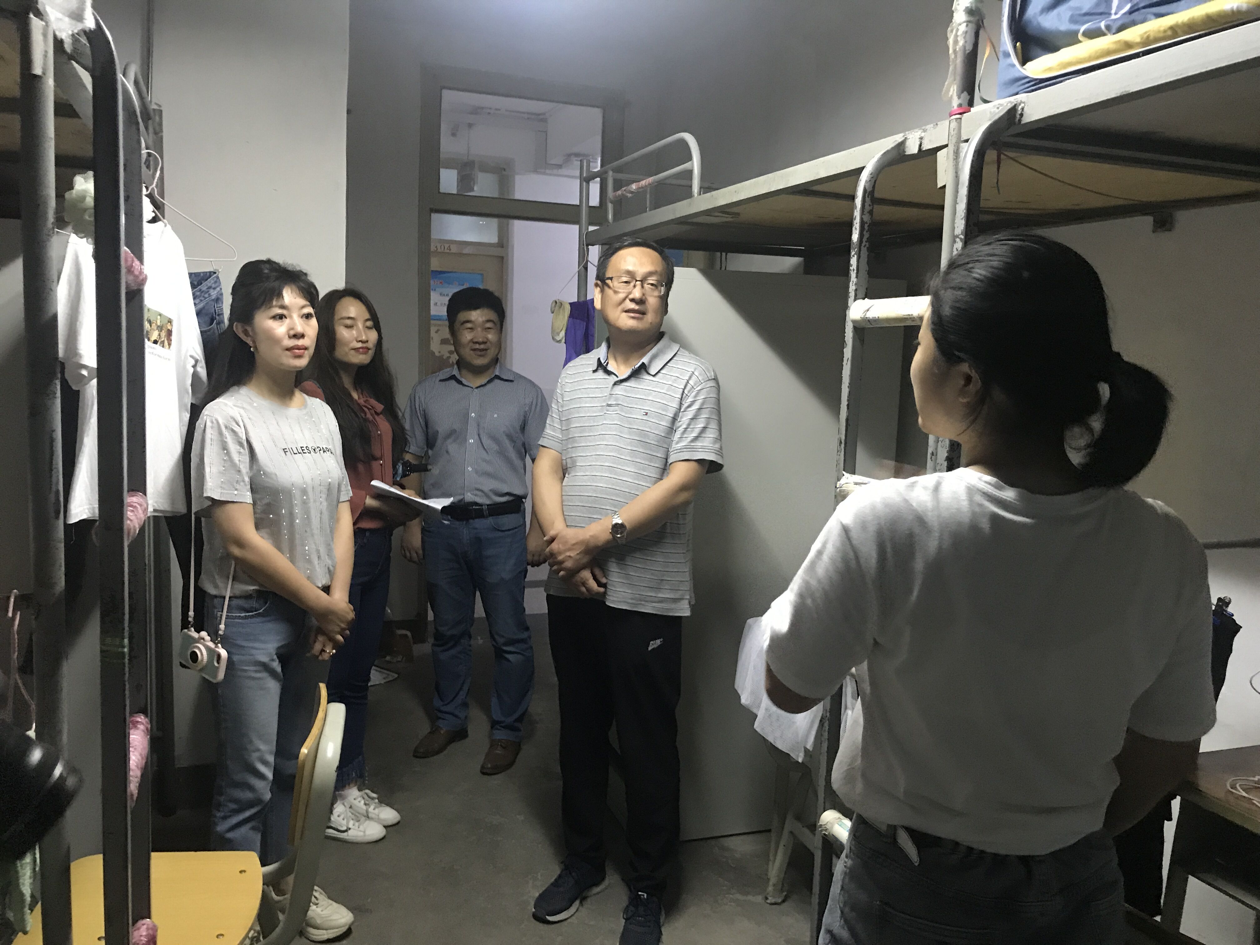 为了了解新生寝室的入住情况,便于新生更快地融入大学生活,2019年9月3日晚,350vip浦京集团官网党委书记刘慧阳、副书记蒋玲、副院长康廷虎,团委书记许琼英老师,辅导员刘海玲老师及1班班主任刘显翠老师、2班班主任安文珍老师走访了浦京新生寝室,向刚入学的19级新生送去了温暖。