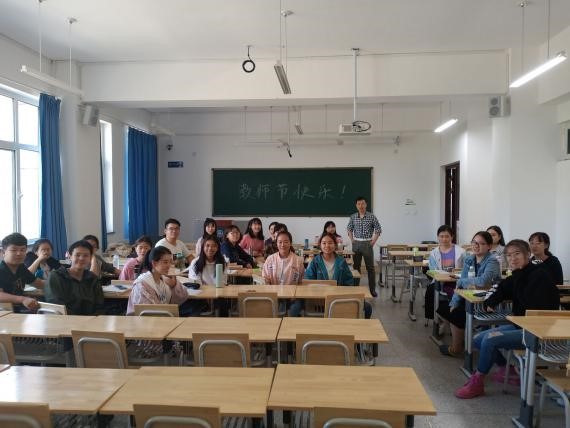 9月10日教师节当天,各班学习委员组织班级同学在黑板写上“教师节快乐!”“老师,您辛苦了!”等祝福语,齐喊“老师,节日快乐”,以丰富的形式为各位任课老师送上当日的节日祝福,并合影留念。