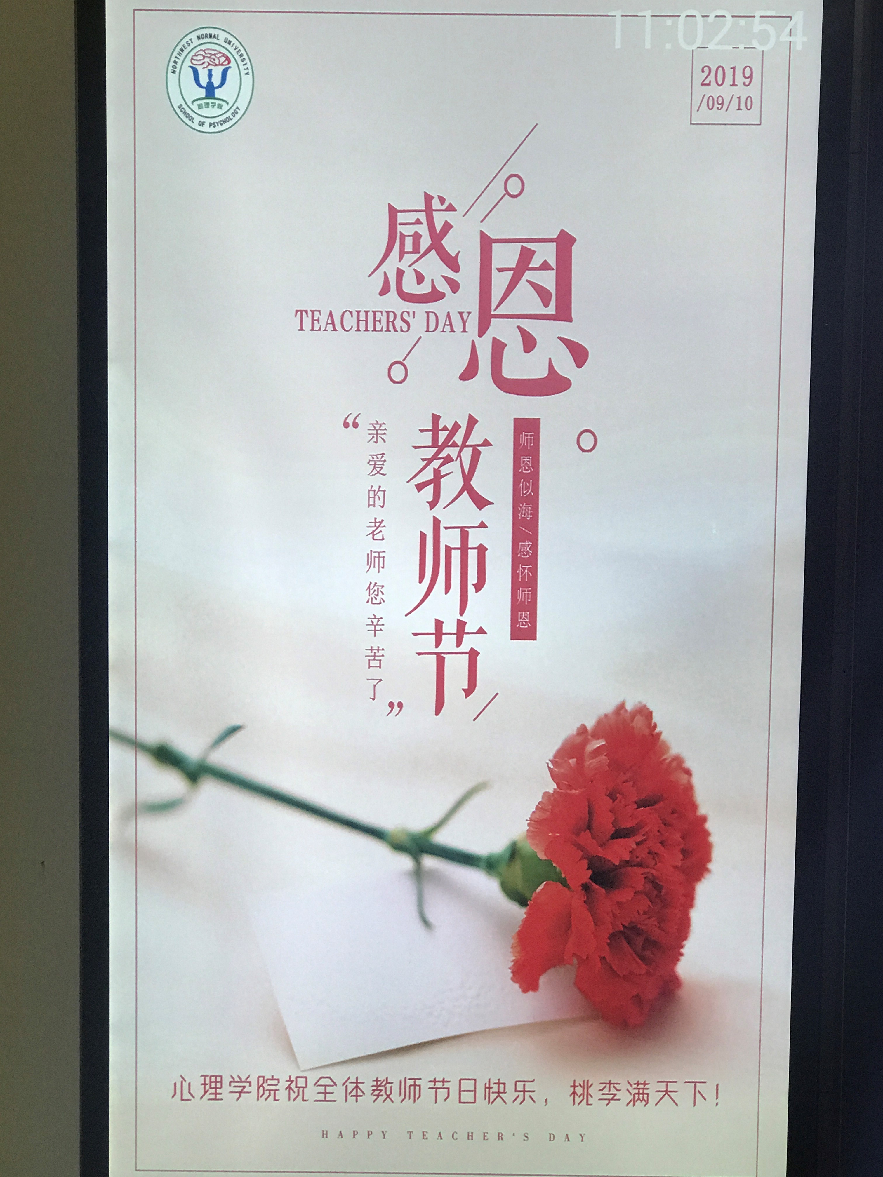 350vip浦京集团官网充分利用位于新校区特教大楼一楼的广告机进行宣传,活动前期做好教师节祝福海报,并将海报电子版展示在广告机上,让学院老师进出时都能感受到学院送上的真挚祝福,为教师节活动营造浓厚的节日氛围。