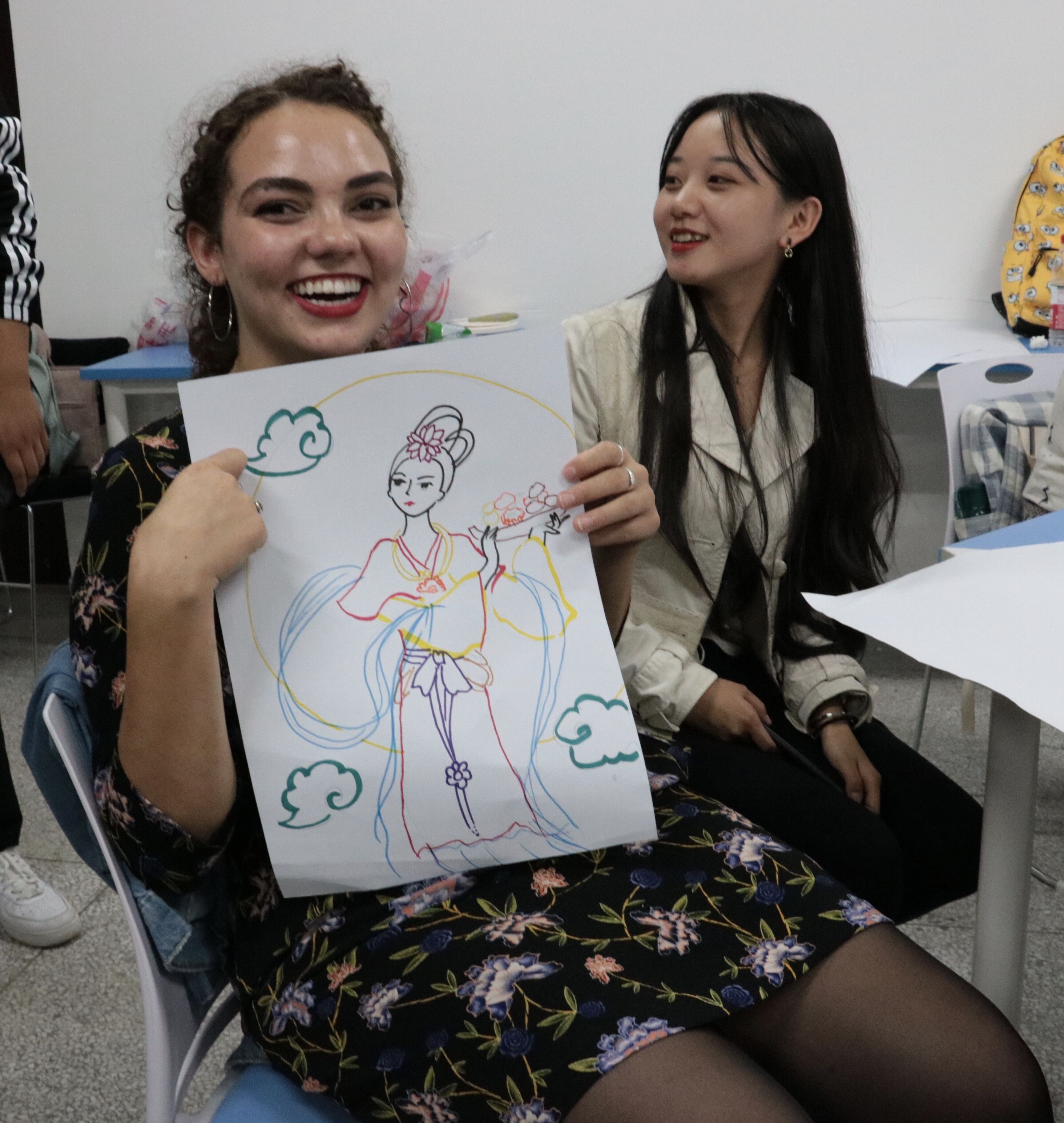 最后进行的是我们的“教中文”环节,一些同学教Nicole等人学习了有关中秋的汉语,比如说“月饼”、“花好月圆”等。