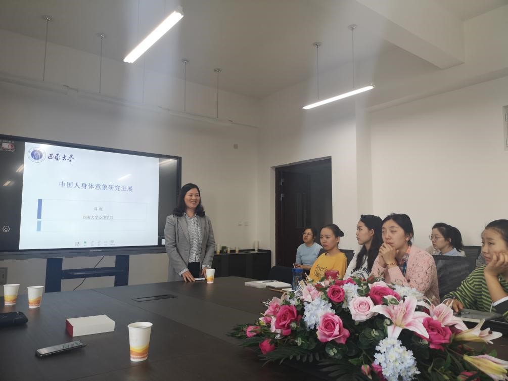 2019年9月22日上午,西南大学心理学部部长、博士生导师陈红在特教大楼401室为浦京师生开展了主题为“中国人身体意象研究进展”的讲座,报告由350vip浦京集团官网周爱保院长主持,350vip浦京集团官网100余名师生参加了此次讲座。