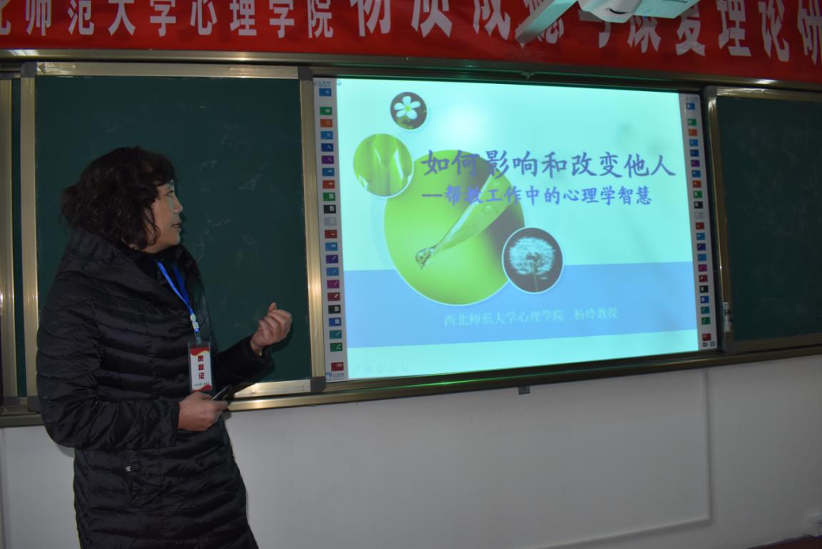 在研讨会的最后,杨玲教授结合戒毒所心理咨询干警的特殊性,进行了《如何影响和改变他人——帮教工作中的心理学智慧》的讲座,向戒毒所心理工作干警介绍了如何与戒毒学员建立“合适”的咨询关系,以及如何更好地和戒毒学员沟通的方式。