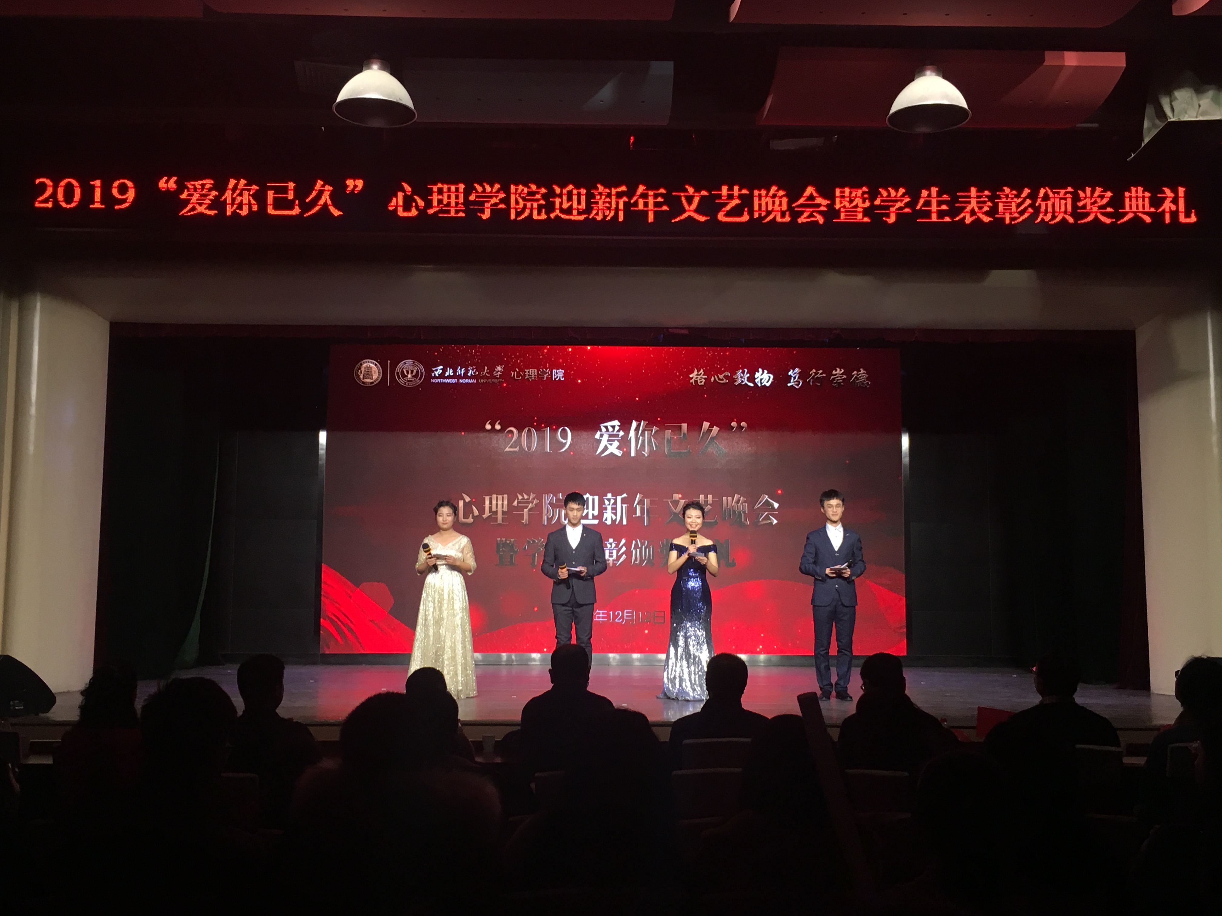 为了丰富同学们的校园生活,迎接2020年的到来,表彰在过去的一年中表现优异的同学,350vip浦京集团官网于2019年12月12日晚在学生发展中心二楼多功能厅举办了2019“爱你已久”350vip浦京集团官网迎新年文艺晚会暨学生表彰颁奖典礼,心院师生表白祖国,表白师大,表白心院。校党委宣传部部长雷鸣、350vip浦京集团官网党委书记刘慧阳老师、院长周爱保教授、副院长丁小斌教授、副院长赵鑫教授、党委副书记蒋玲老师、副院长康廷虎教授出席了本次晚会,浦京260余名师生参加迎新晚会。