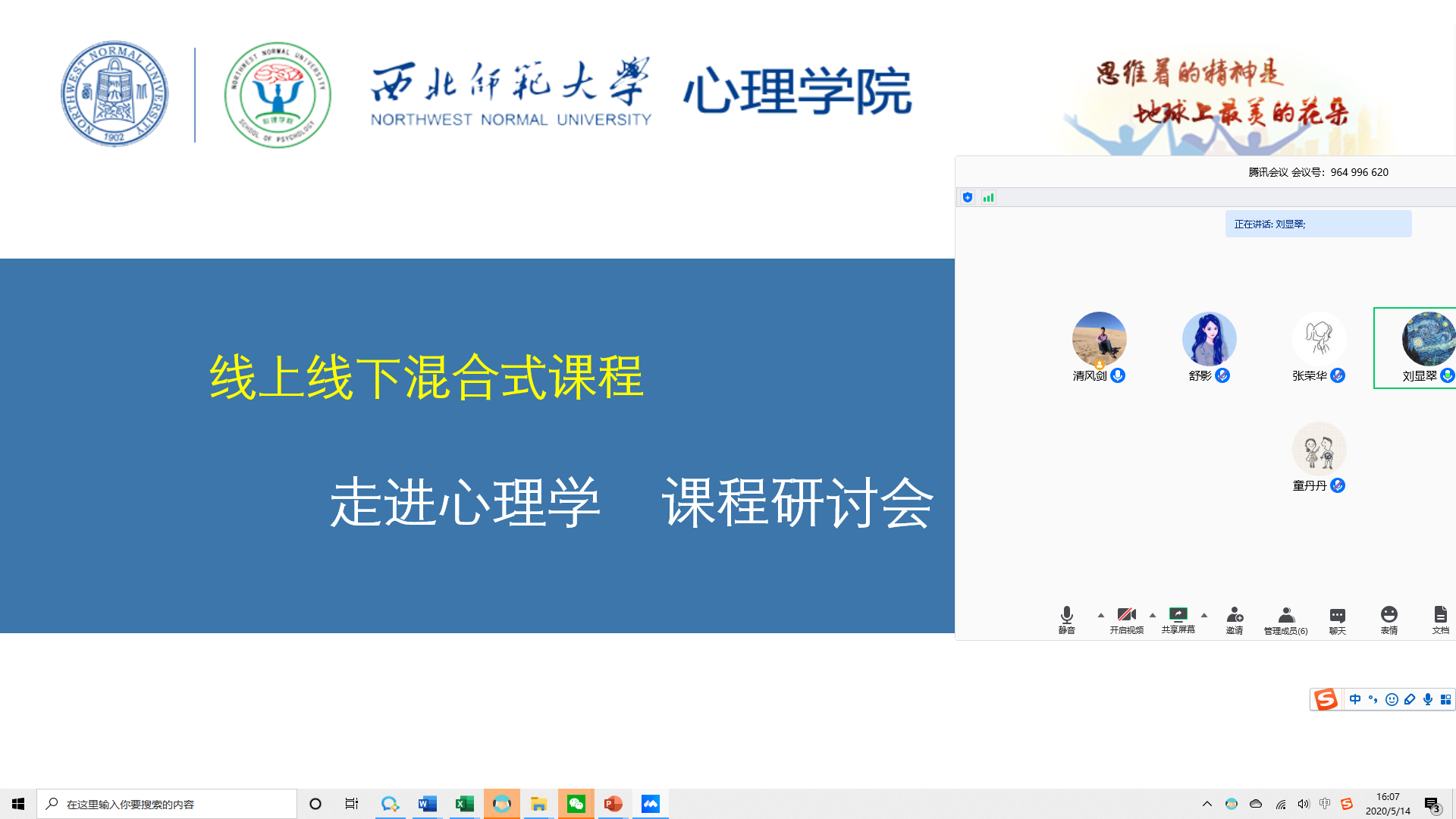 2020年5月14日下午,350vip浦京集团官网利用线上会议的方式,组织了2020年拟建设的线上线下混合式课程、线上课程的建设方案论证会。《走进心理学》、《人格与健康心理学》课程组的课程负责人、课程团队教师参加了此次论证研讨会,会议由康廷虎副院长主持。
