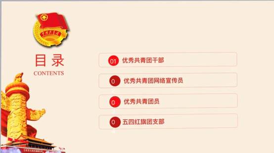 随后,依次进行了优秀共青团干部、优秀网络宣传员、优秀共青团员和五四红旗团支部的答辩。每位答辩者从精神思想觉悟、自我学习能力、追梦理想、突出贡献等多个方面进行展示,以铿锵有力的语调阐述了身为共青团员的自觉与无私,充分展现了优秀共青团员的风采和无私奉献的精神面貌;在进行五四红旗团支部评选时,答辩代表人以清晰的条理展示了团支部在文化建设、团日活动的策划和组织方面等发挥的积极作用,展现了各个团支部的奉献精神以及创新精神。
