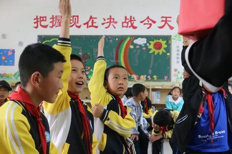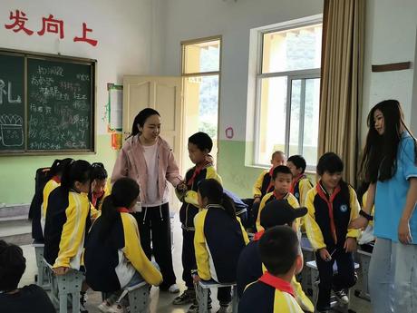 实践队员带领高年级的学生学习并朗读节选自梁启超先生的散文《中国少年说》,以此培养学生的爱国情怀。带领低年级的学生学习并朗读诗歌《感恩》,让学生懂得人应怀有一颗感恩之心。