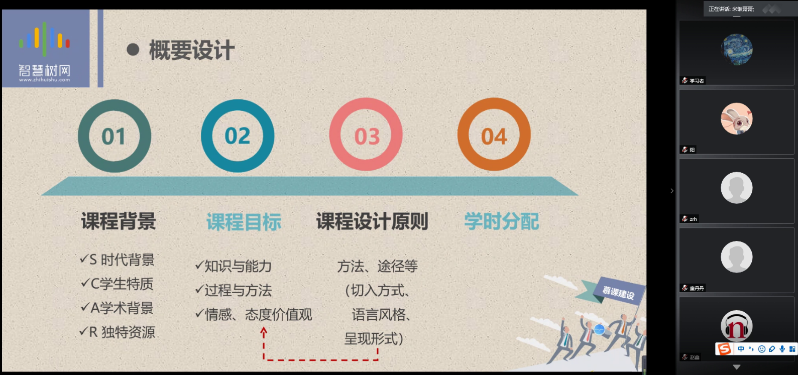 智慧树平台课程顾问李亚臻老师在《如何轻松建好课?》的报告中,分别从“我们是谁”、“我们如何建设一门MOOC”、“课程建设——交流互动”等三个方面,介绍了智慧树平台的课程建设,并结合实际的建设案例详细介绍了课程设计、课程制作、课程推广、课程运行等慕课建设流程,以及在各个环节需要准备的相关内容、注意的事项等。特别是对课程设计过程中的“三词一句”、知识点切分、时间分配等做了细致说明。