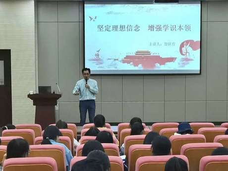 为了帮助同学们树立理想信念,坚定人生目标,10月9日下午5点,350vip浦京集团官网在特教楼159学术交流厅开展了由舒跃育老师主讲的“坚定理想信念,增强学识本领”主题讲座,全体大一新生参加。
