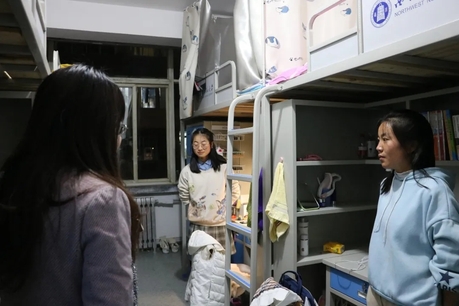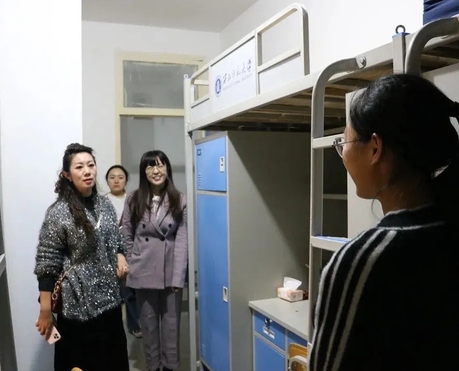 院领导以及学生会成员进入宿舍对宿舍电器以及宿舍卫生进行检查并纠正,禁止在宿舍内使用电褥子、电吹风机等违禁用品,排除可能发生安全问题的隐患。在走访大一学生宿舍时,辅导员王一飞就男生抽烟问题提出建议,在宿舍内要做好宿舍内务整理,保证宿舍安全干净整洁,维持良好宿舍环境。