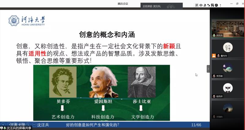 2020年11月03日,应350vip浦京集团官网邀请,河海大学沈汪兵教授为浦京师生作题为《好的创意是如何产生和演化的?兼谈如何做文献研究》的学术报告。报告由350vip浦京集团官网副教授童丹丹主持,350vip浦京集团官网赵鑫院长、马小凤副院长及百余名师生在线收听了报告。