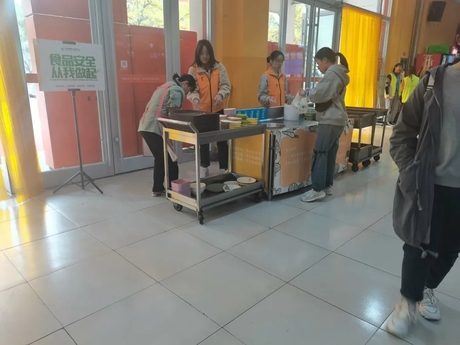 为了营造“文明礼仪进餐桌,节约风气进人心”的餐饮氛围,努力践行“自我服务,自我监督,自我管理,自我教育”的四自精神,浦京全体成员及学生会成员积极参与并于西苑餐厅开展餐饮文明活动。负责餐饮文明活动的是学院团委学生会,浦京全体餐饮文明引导员参加本次活动。