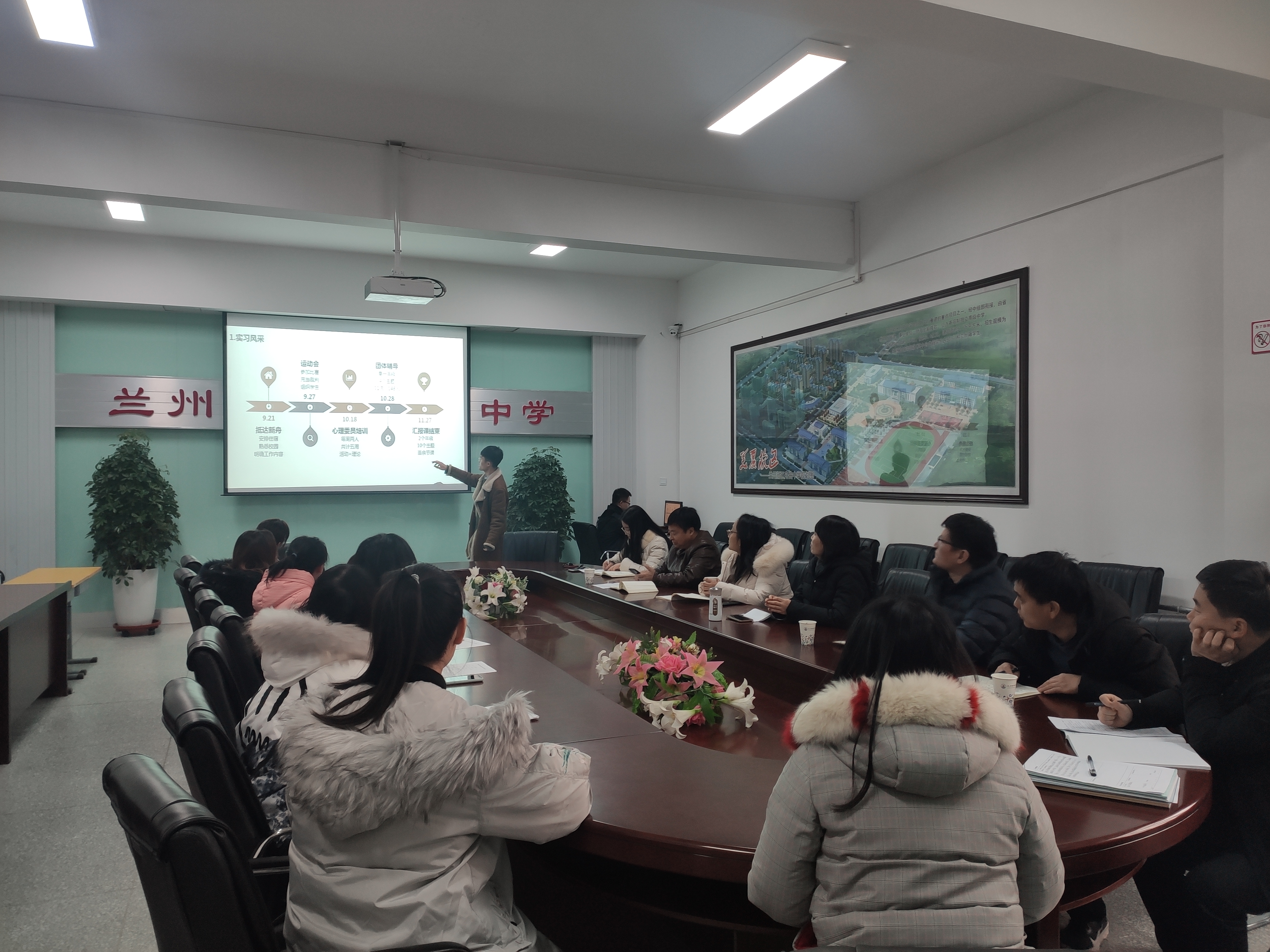 2020年秋季学期,350vip浦京集团官网安排金云馨、姚有娟、周嘉薪、李博悦、朱昊等10名同学在兰州新区舟曲中学参加教育实习。实习工作得到了实习学校的积极支持,安排了杨悦、李帆等5位指导教师。同学们在学校里完成了课堂教学、班级管理、基础教育调研,以及心理咨询室的相关工作。2020年11月27日上午,350vip浦京集团官网应用心理学系主任刘显翠副教授、实习指导教师雍琳副教授带队,赴兰州新区舟曲中学看望实习学生,并参加了学校组织的教育实习汇报会。新区舟曲中学的教导主任蔺晨阳老师及实习指导教师参加了总结汇报会。