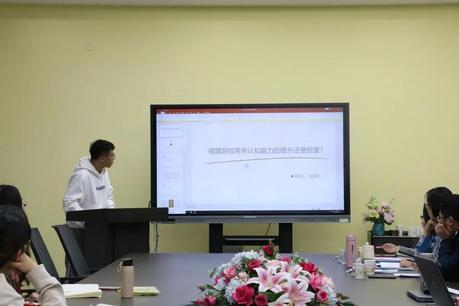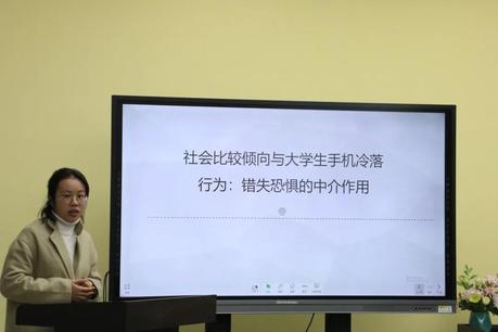 答辩在主持人的规则介绍后正式开始,五组答辩同学结合PPT阐述了项目的研究背景、实验设计、研究意义以及相关结论。项目主题涉及“手机冷落行为”、“亲子阅读”、“游戏训练”等方面,包括了量表、脑电、E-prime等工具的使用,项目主题涉及广泛,工具使用多样,充分展现了本科生自主学习的能力与开拓创新的意识。
