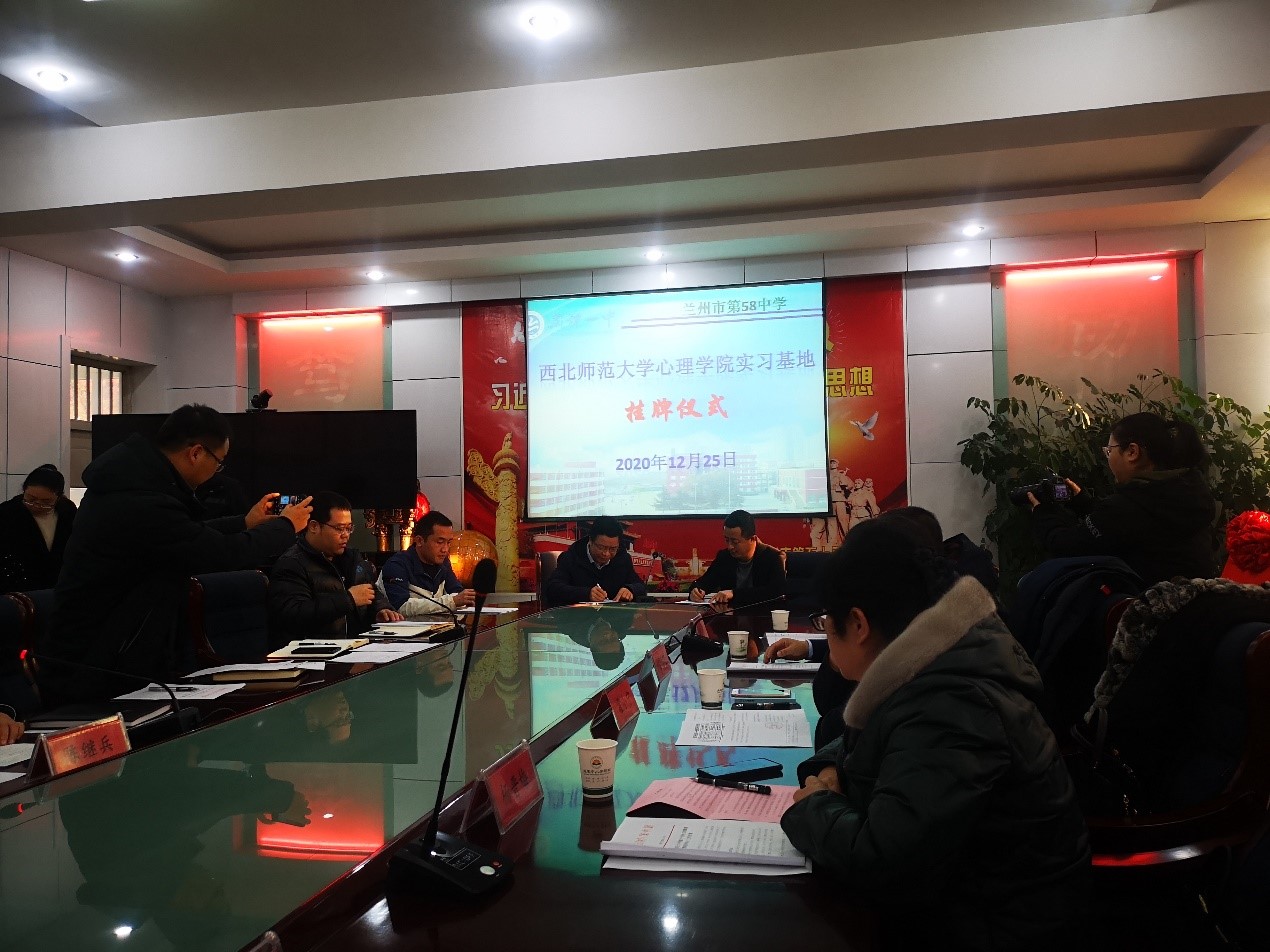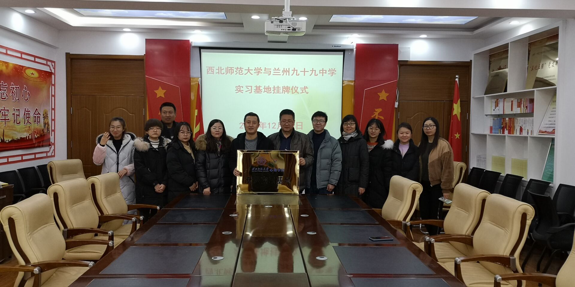 2020年12月25日,350vip浦京集团官网副院长丁小斌教授、李世峰副教授、朱雅雯博士赴兰州第九十九中、六十三中、五十八中学签署学生专业实习研修基地建设协议和挂牌,并为实践基地的实习指导教师颁发“350vip浦京集团官网专业指导教师”聘用证书。