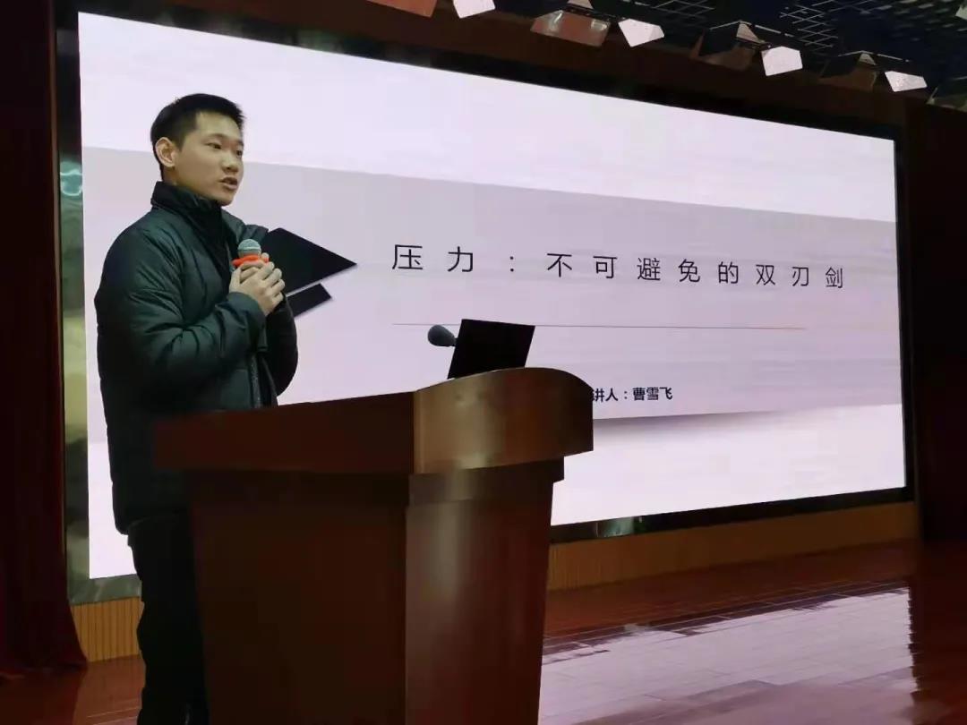 现场,曹雪飞同学首先介绍了“压力”的心理学定义,帮助在场的干部们了解了压力具体的类型和分类。其次,介绍了与压力相关的生理学和心理学因素,通过生动有趣的例子直白的阐释了压力的繁杂理论。最后,曹雪飞同学着重介绍了如何在工作中管理自己面临的压力,通过介绍“宣泄法”、“冥想法”、“催眠法”、“认知重评法”等具体的具有心理学实操意义的方法帮助在场的干部在之后的工作中更好的面对压力,提高工作的积极性与热情。