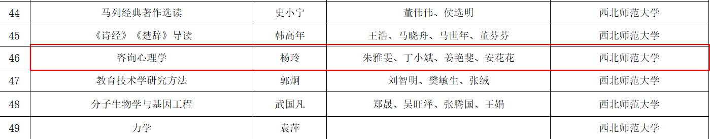近日,甘肃省教育厅发布了《甘肃省教育厅关于公布甘肃省 2020 年省级一流本科课程认定结果的通知》,浦京杨玲教授任课程负责人的《咨询心理学》被认定为2020年省级线下一流本科课程,学院由此在一流本科课程建设上取得可喜突破。