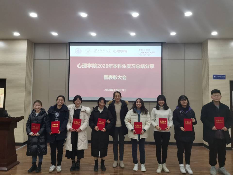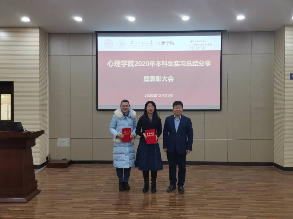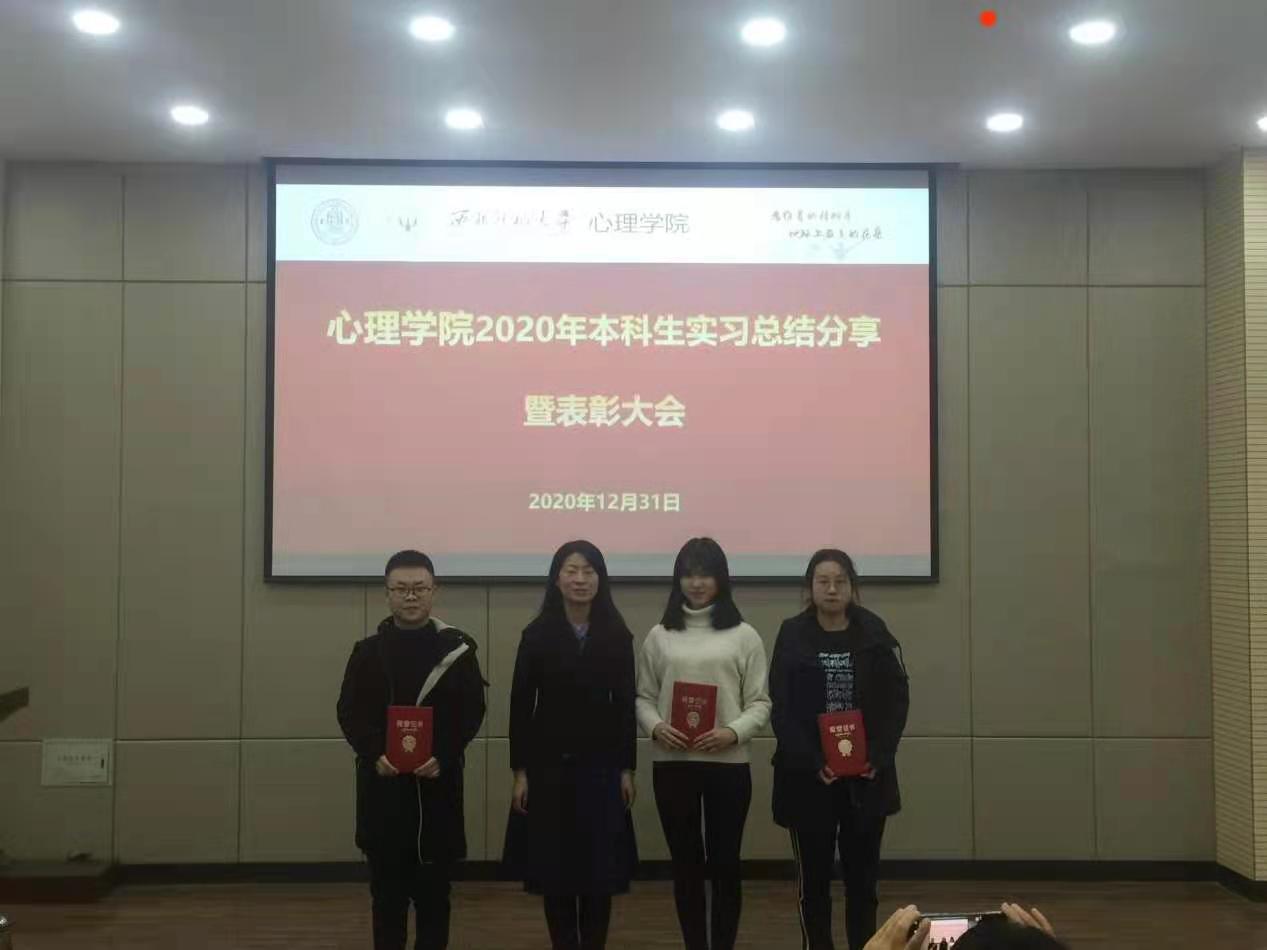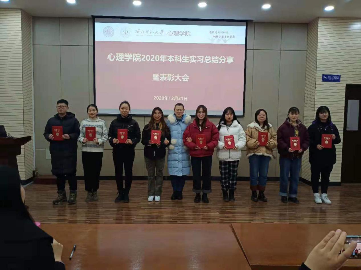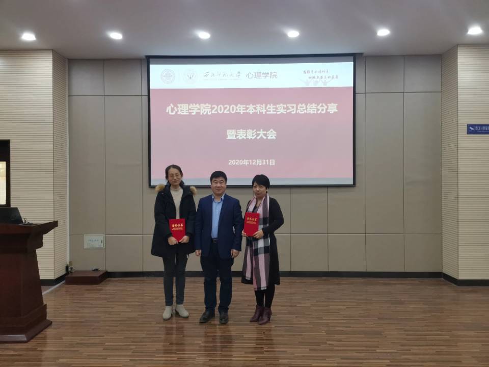 2020年12月31日下午,350vip浦京集团官网组织2017级本科生实习总结分享暨表彰大会,活动在新校区特教楼159会议室举行。实习学校指导教师代表七里河小学马丽老师、兰州市第五十四中学张亚红老师,350vip浦京集团官网副院长康廷虎教授、应用心理系主任刘显翠副教授、350vip浦京集团官网实习指导老师代表雍琳副教授、陈莉副教授、姜艳斐副教授、童丹丹副教授,以及2017级全体本科实习生参加了活动。活动由应用心理系系主任刘显翠副教授主持。