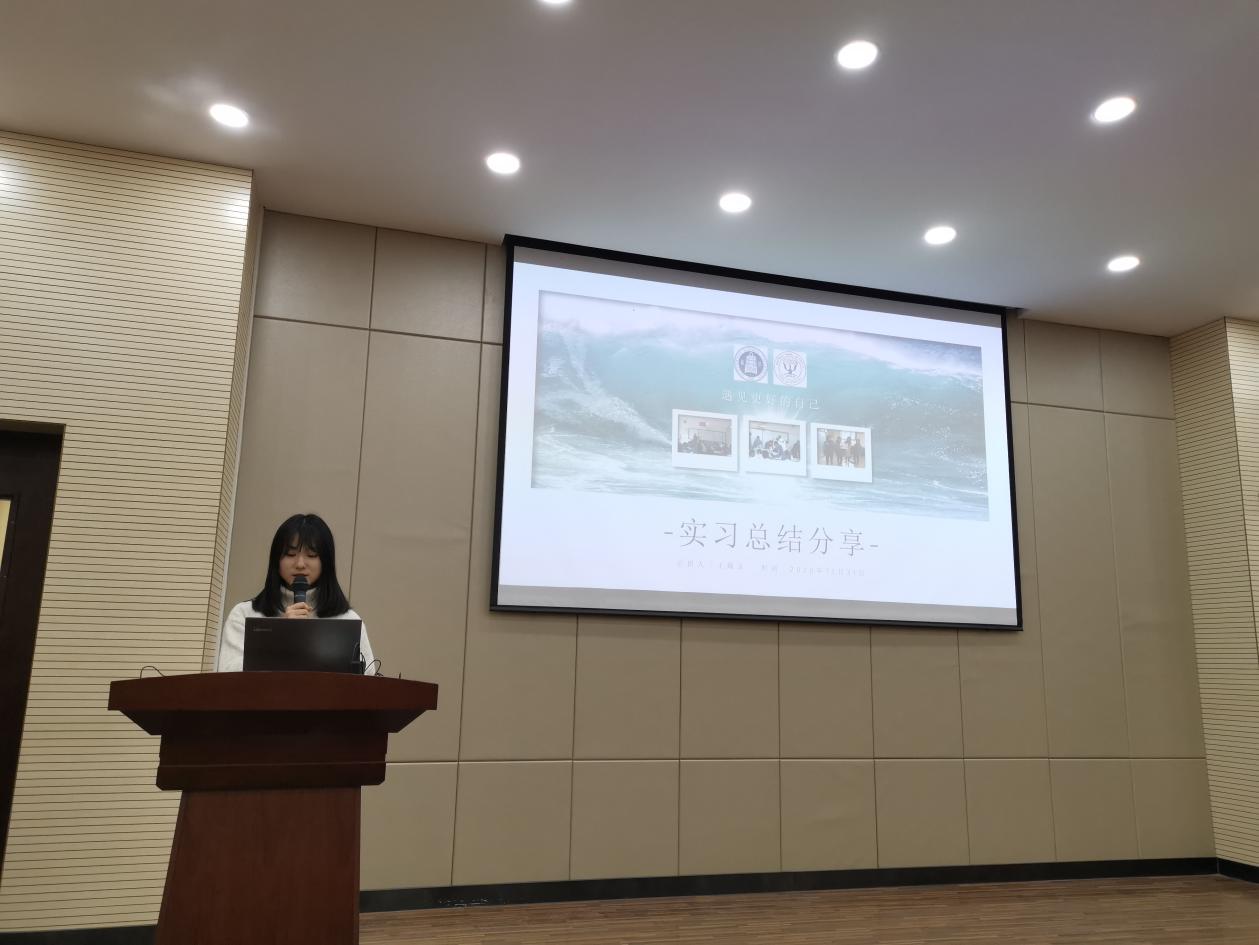 在实习总结分享中,胡佳丽、王婉玉、杨理钧等三名同学分别结合自己以及实习小组的实习工作,从课堂教学实践、班主任管理、实习期间的收获等方面做了分享。在课堂教学实习方面,各位同学积极参加听课评课、教研活动,以及课前备课、课堂组织教学活动等。在班主任班级管理工作方面,同学们参与、组织了班会,参与了跟早读、自习课管理、课间操管理等各类班级管理活动。在分享实习期间的收获与感悟的过程中,三名同学分享了了大家经历了备课时从慌乱到有条理性、讲课时从紧张到从容等的成长经历,他们还就实习过程中发现的问题和自身存在的不足,做了认真仔细的剖析,并分享了自己实习期间的所见所闻。