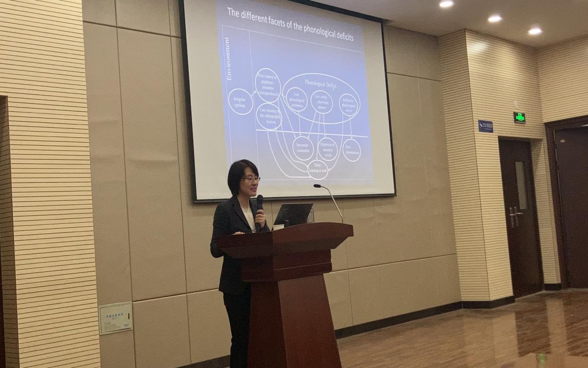 赵晶晶老师首先介绍了其实验室的四个主要研究领域,随后就发展型阅读障碍进行了重点论述报告。首先,赵老师介绍了发展型阅读障碍的特点,主要包括阅读技能受损、读写障碍、存在说话晚及吐字不清等问题。而后,赵老师从认知、脑、遗传及环境等层面对发展型阅读障碍的影响机制探讨的研究做了重点论述。揭示阅读障碍是由多方面交互影响导致,提示研究者今后的研究需要多方面综合分析。