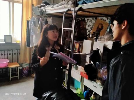 在走访宿舍的过程中,老师逐一询问了同学们的学习情况和工作规划,与大四同学进行了深入的沟通和交流。对于正在找工作的同学,老师在了解同学们参加招聘的具体情况后,告诉他们找工作一定要早做准备,多关注线上、线下的就业招聘信息,并教给同学们工作面试等技巧。