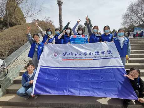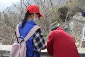 活动开始前,各高校志愿者们在老师的引导下有序领取物资,大家8:40在五泉广场集合并合影。