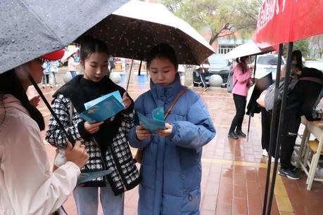 志愿者们向来往的同学们发放自闭症宣传手册,介绍有关自闭症儿童的专业知识。